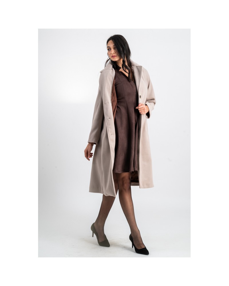 Ce manteau présente une coupe classique indémodable, en doux tissu contenant de la laine.
